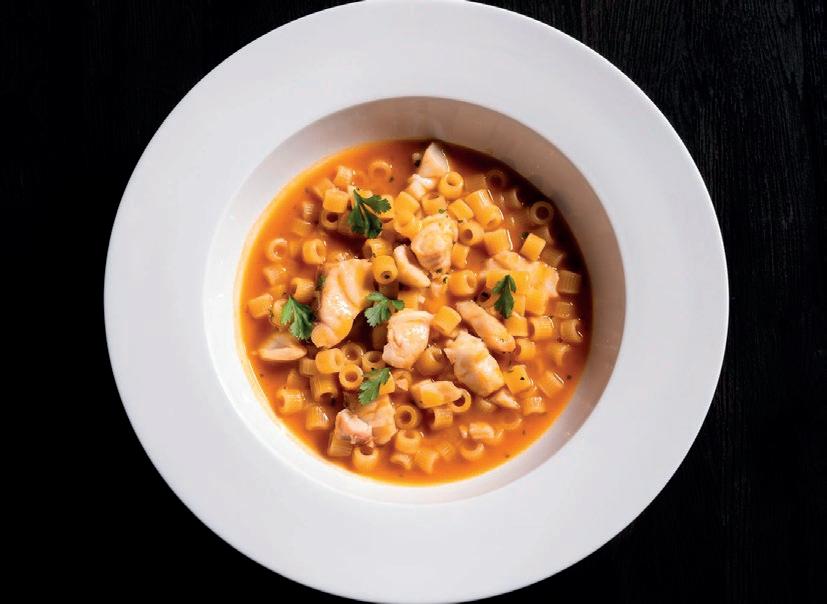 Ti propongo la pasta mista con la zuppa di pesce, che nel menù si chiama Profumo di Casa. È un piatto che per me ha un valore sentimentale: mia madre lo preparava ogni domenica e il profu mo che invadeva la casa è un ricordo indelebile.