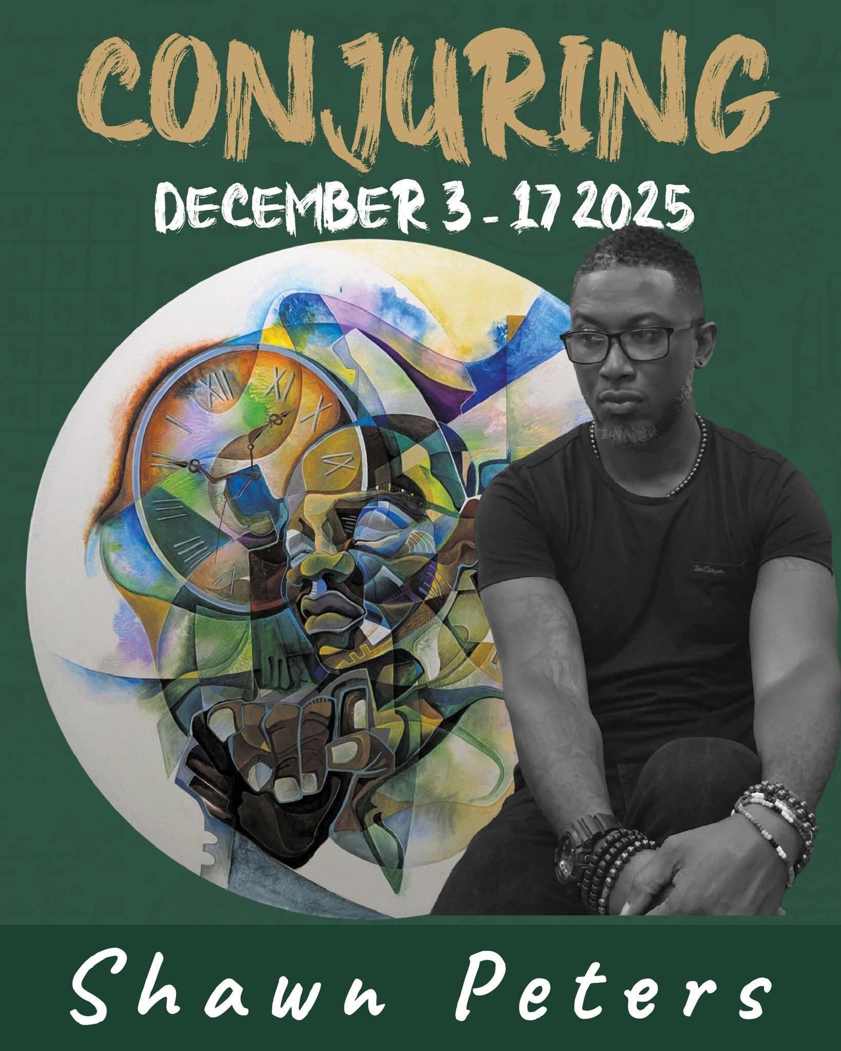 “Shawn Peters has been shaping the future of Caribbean art since childhood— guided first by Trinidadian artist Makemba Kunle and later by the legendary Leroy Clarke, who became his mentor and creative compass. His work blends intuition, spirituality, and a mastery of colour and form, creating pieces that feel like portals—abstract yet deeply human, rhythmic yet contemplative. Shawn’s exhibitions have become some of the most anticipated art events in Trinidad & Tobago, earning him national accolades and features such as “Top 20 Stories of Tomorrow”. His imagery even appears on Trinidad & Tobago’s postal stamps.