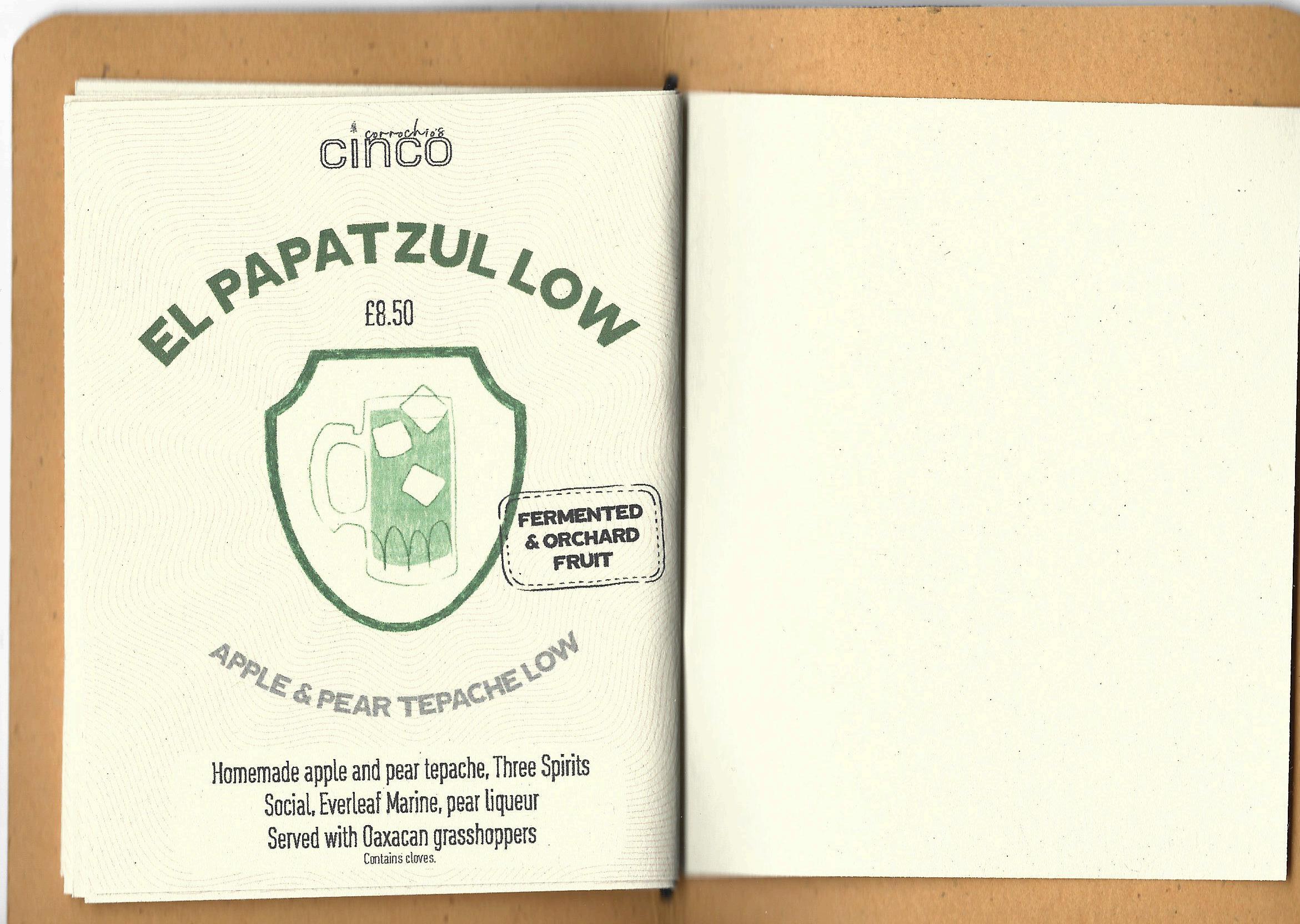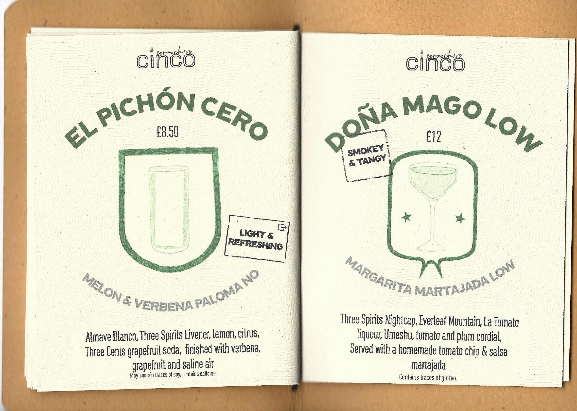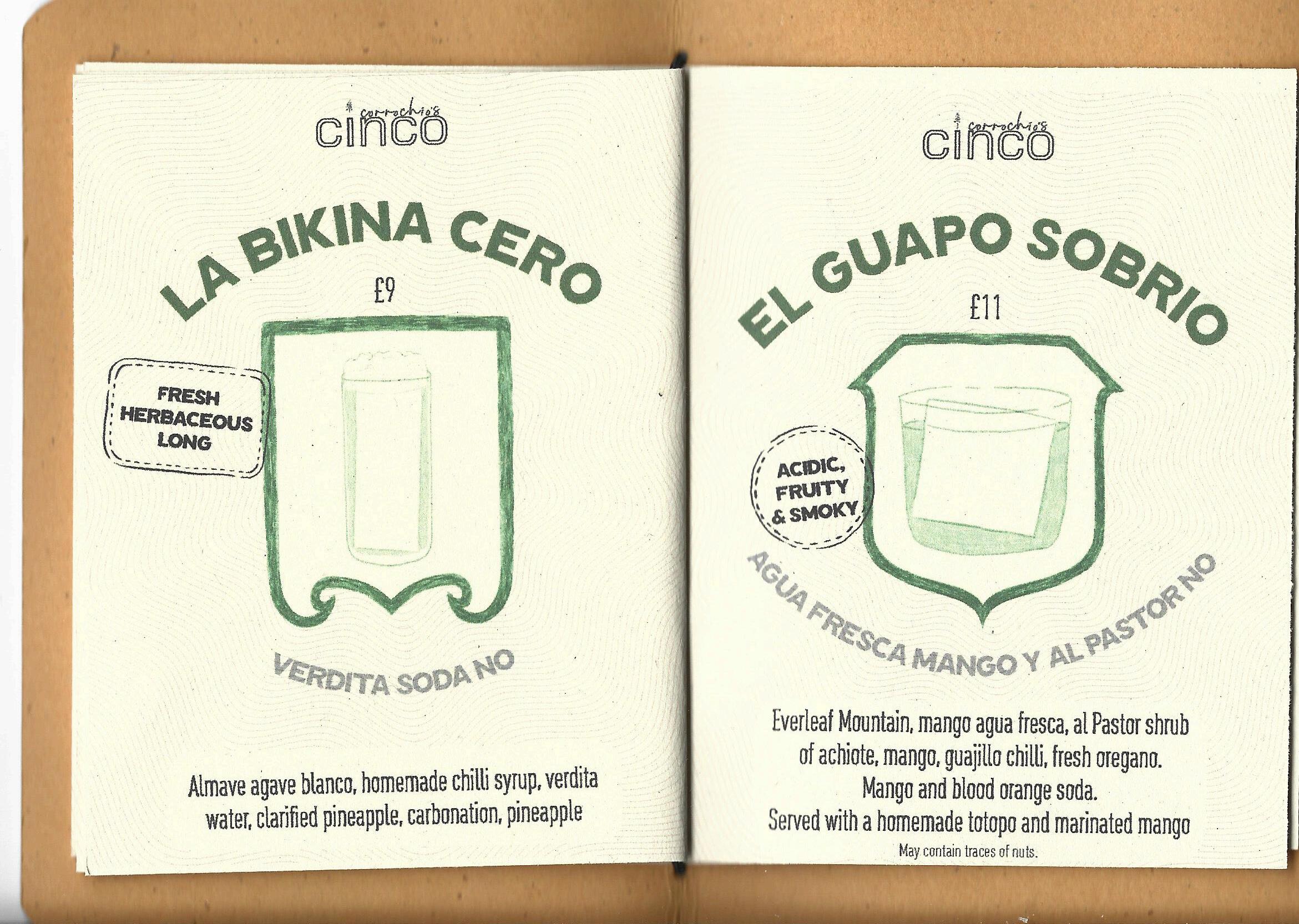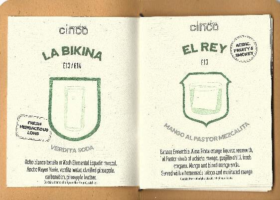 The cocktail menu consists of 5 agave cocktails, 5 Mexican spirits cocktails, and 5 very considered non-alcoholic cocktails, using Mexican ingredients and influence