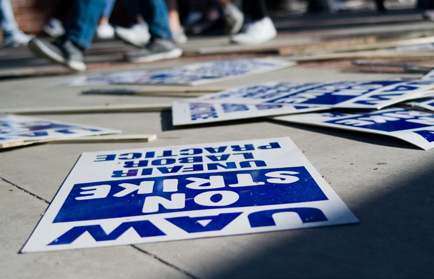 Signs were available to all who wished to participate in the strike on Monday, November 14 at University of California Los Angeles (UCLA).