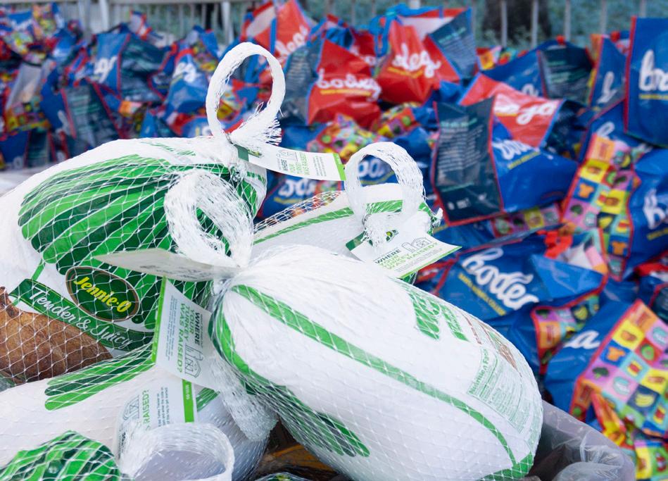 Donation food for the "Giving Thanks(giving)" on Tuesday, No vember 22, 2022, in Santa Monica, Calif.