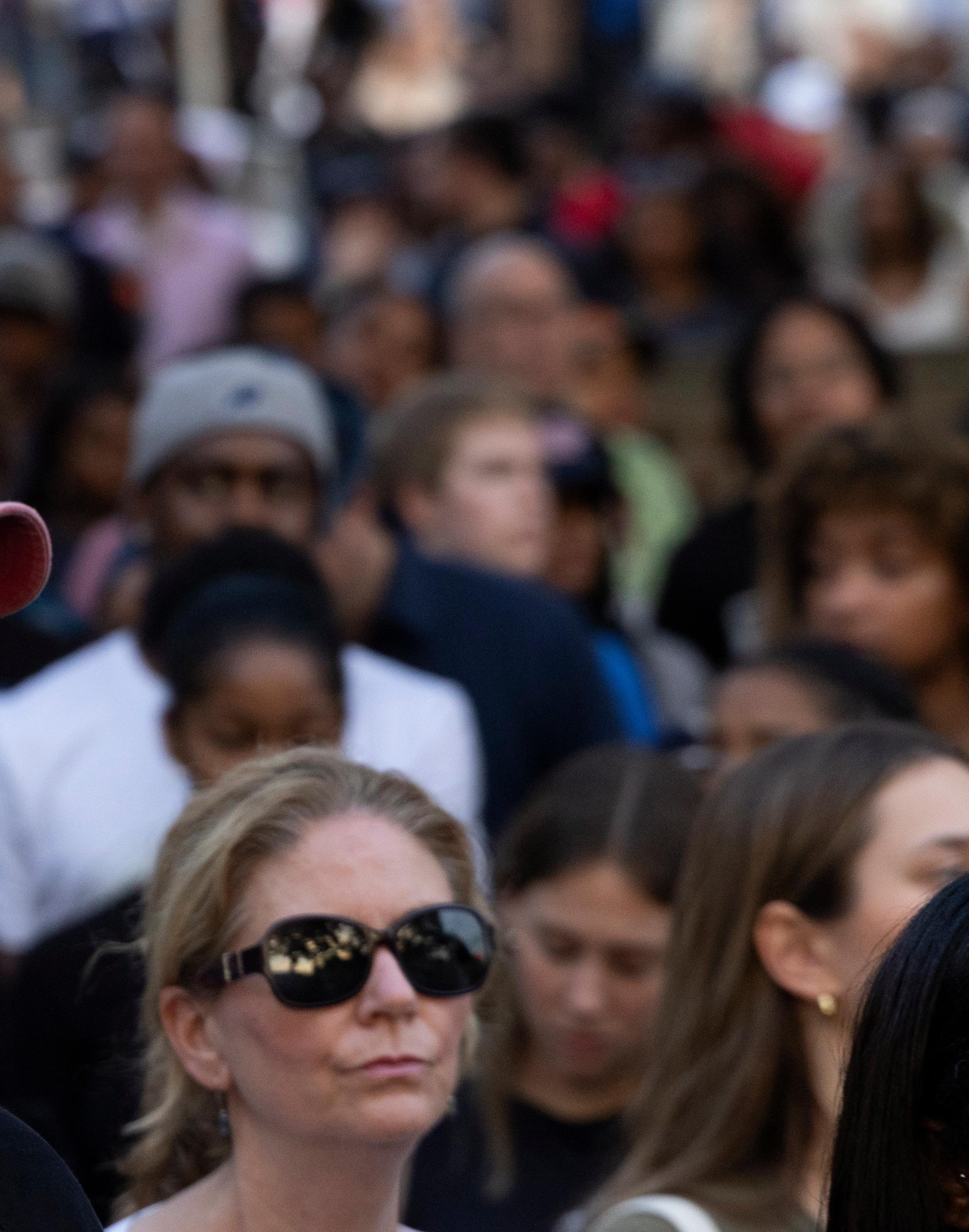 A Philadelphia police officer watches Mayor of Philadelphia Cherelle L. Parker speak at Kamala Harris’s final rally held on the steps of the Philadelphia Art Museum, in Philadelphia PA, on Monday, Nov. 4, 2024. (Jake Crandall | The Corsair)