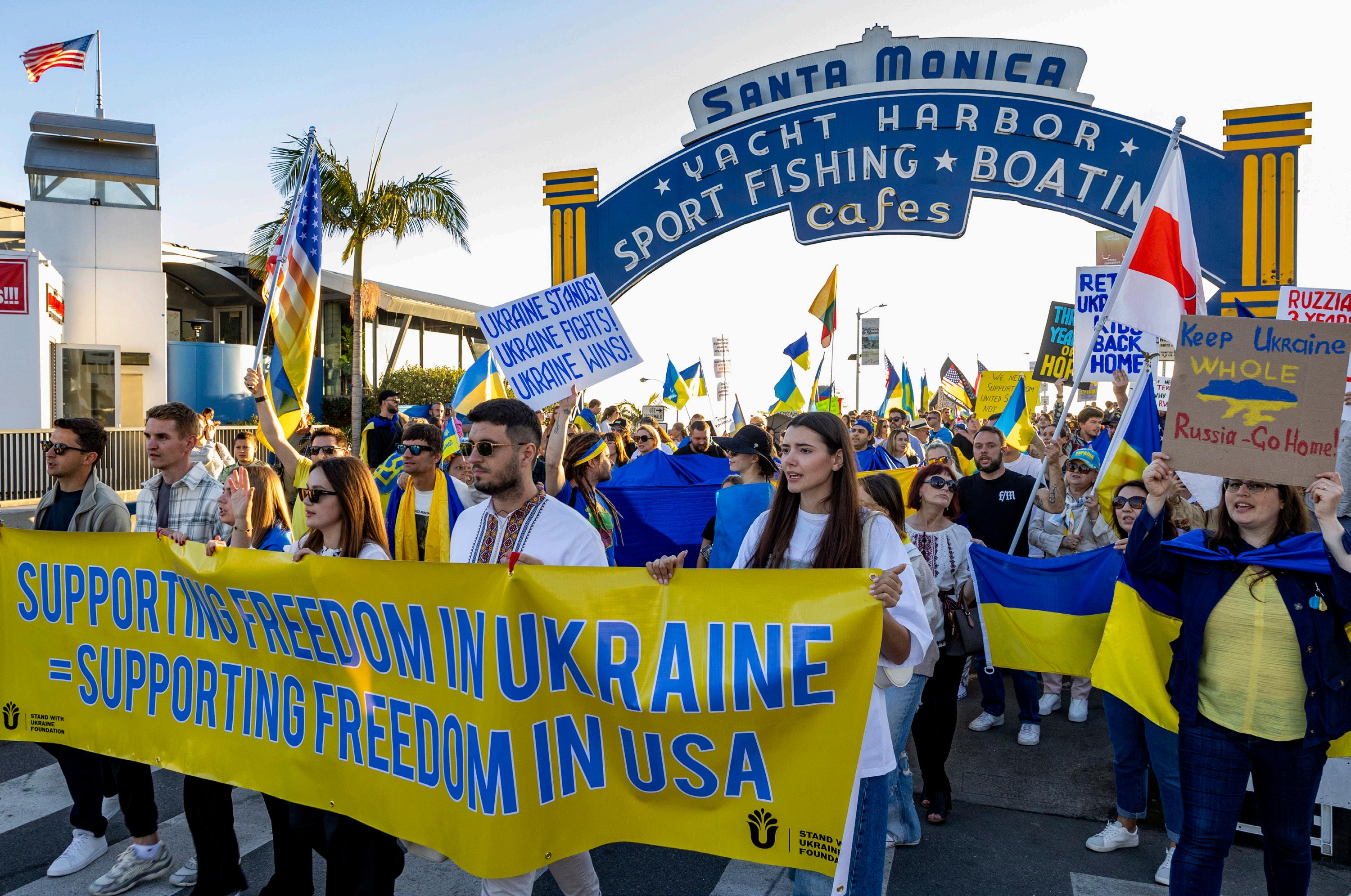The SWU Foundation hosted a march from the Santa Monica City Hall to the Santa Monica Pier in solidarity with Ukraine on the three-year anniversary of the Russia-Ukraine