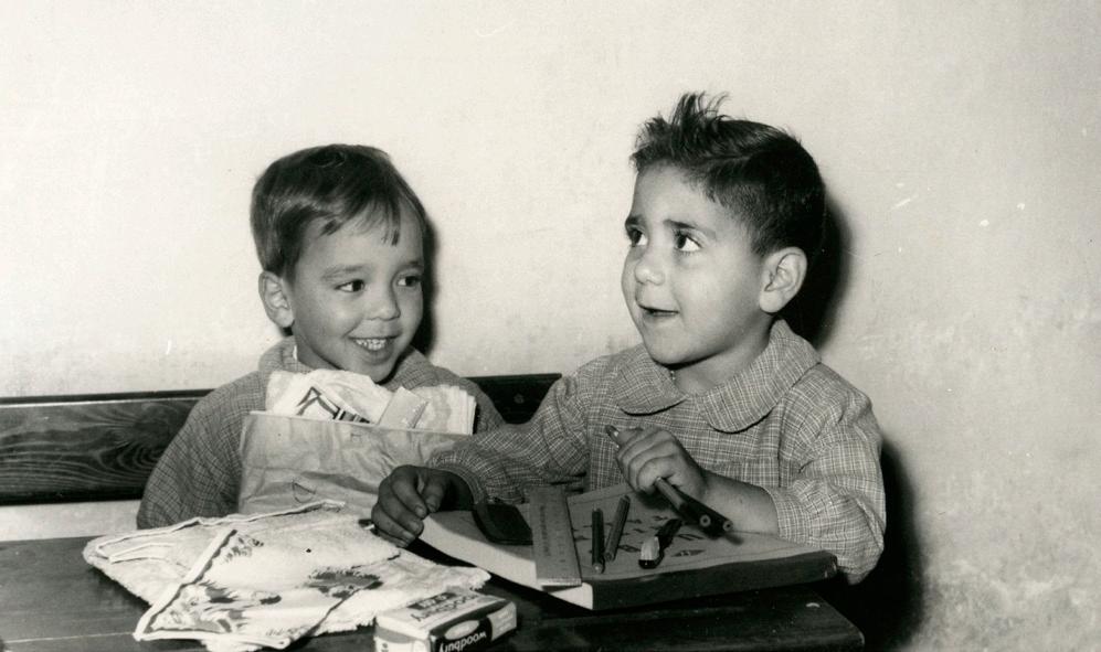 First kits begin. There have been many variations including Kiddie Kits (such as the Palestinian boys receiving these kits in Jordan, 1962), Health Kits and Clothing Kits. Today, LWR distributes four types: Personal Care Kits, Baby Care Kits, School Kits and Fabric Kits.