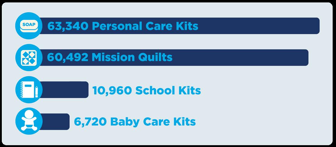 Quilts and kits. Our faithful quilters and kit makers have comforted thousands of people with their handmade gifts. The following have been distributed in Ukraine and Poland to those affected by the war: