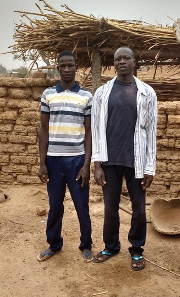 Drissa (right) in front of his home in Burkina Faso. (Jake Lyell for LWR)