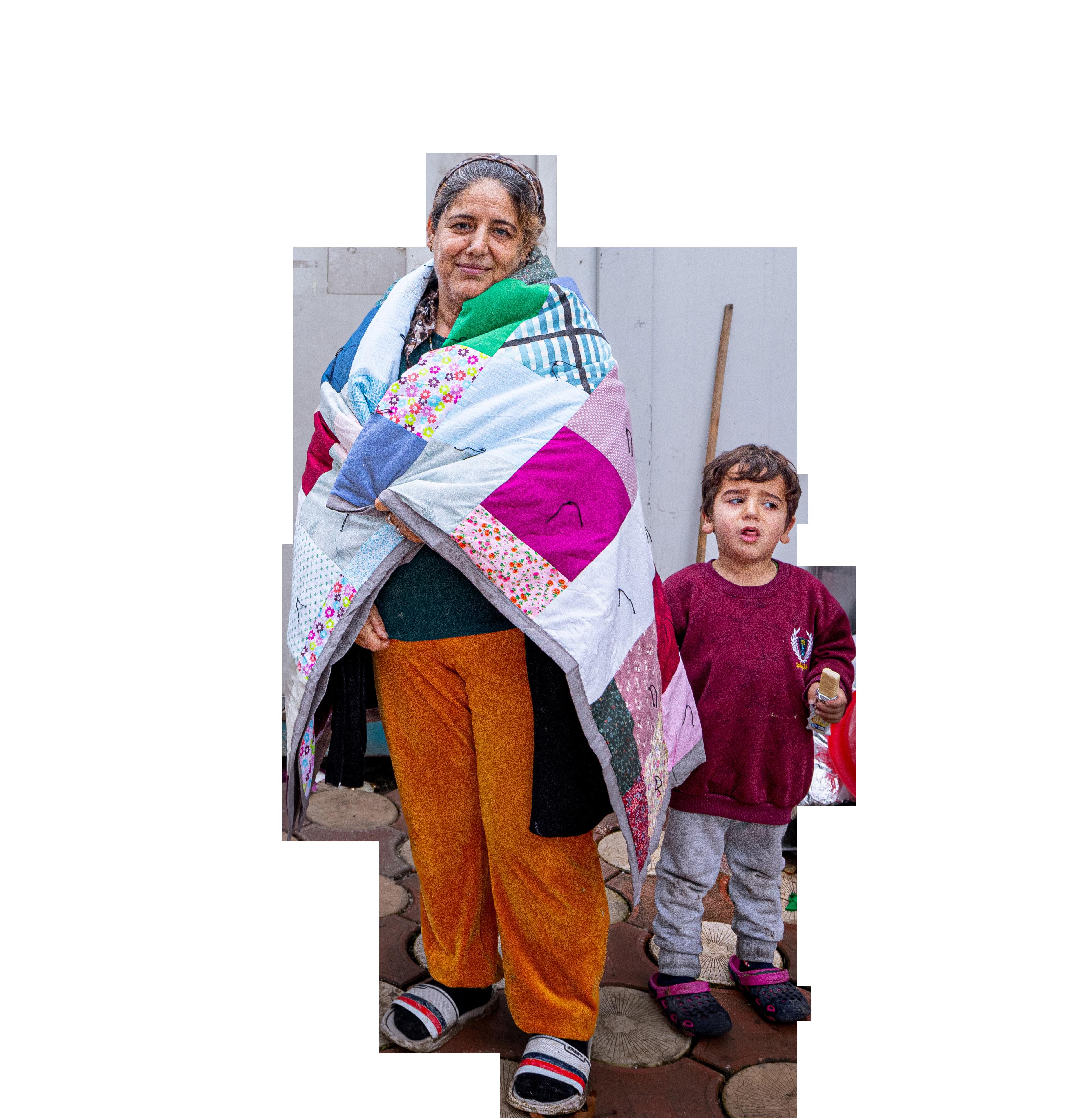 Emsal Koyuncu and her grandson Süleyman Atay have been living in a makeshift shelter since the earthquake in Türkiye. Your quilts and kits surrounded them in their time of greatest need.