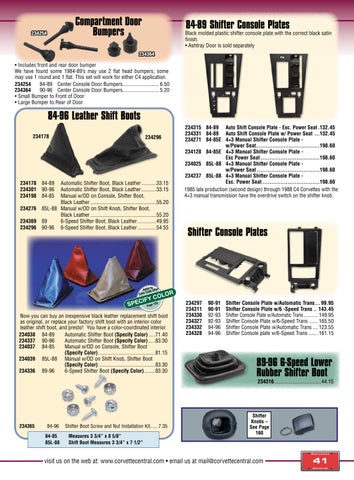13550 Three Oaks Rd., Sawyer, MI 49125 mail@corvettecentral.com • www.corvettecentral.com