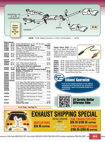 13550 Three Oaks Rd., Sawyer, MI 49125 mail@corvettecentral.com • www.corvettecentral.com