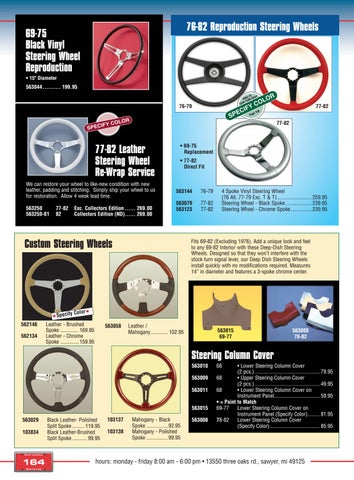 4 Spoke Vinyl Steering Wheel (76 All, 77-79 Exc. T & T)...........................259.95 Steering Wheel - Black Spoke.....................239.95 Steering Wheel - Chrome Spoke.................239.95