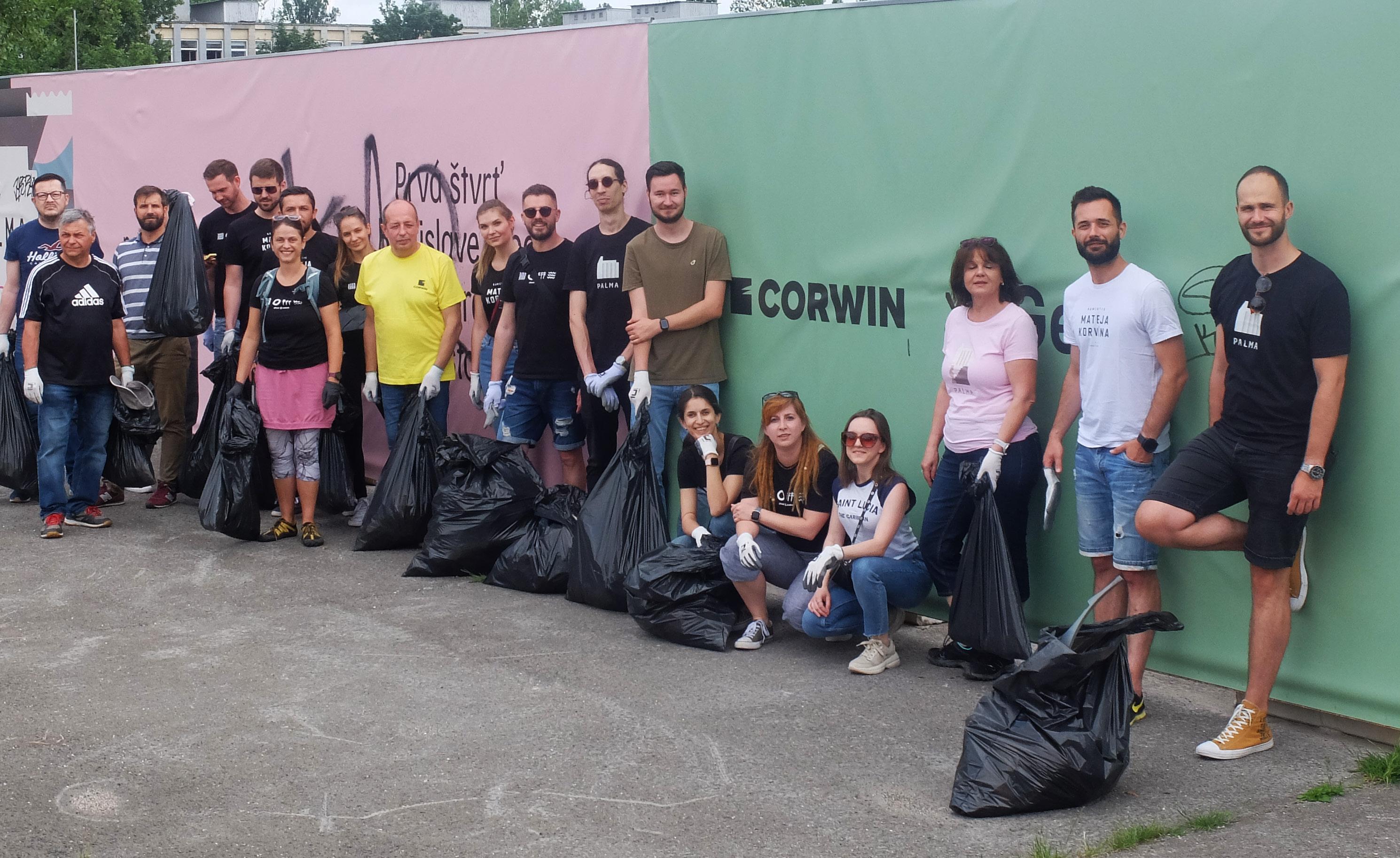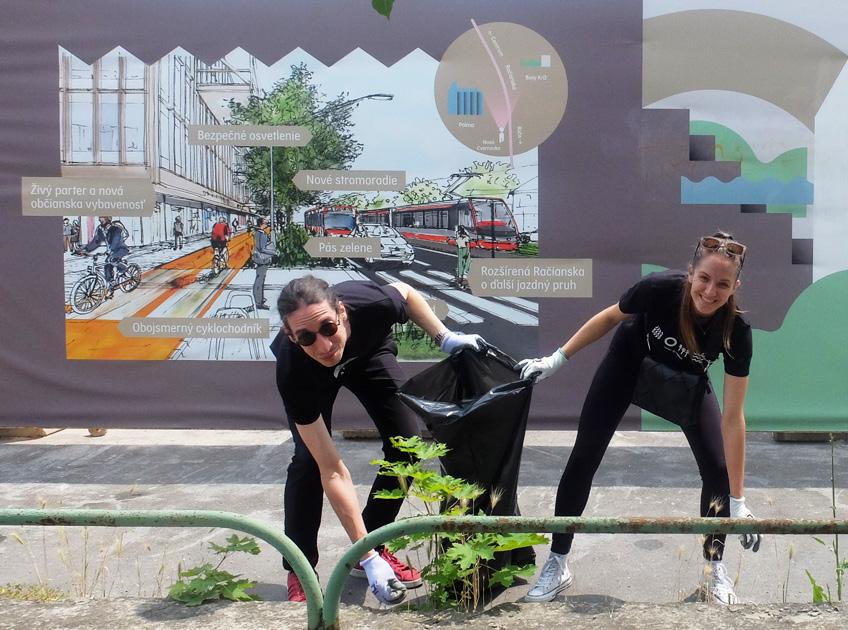 Zamestnanci CORWINU a niekoľkí Novomešťania si ubrali kúsok zo svojho času, aby pomohli a vyčistili úsek Račianskej pri Palme a pri Guthause.