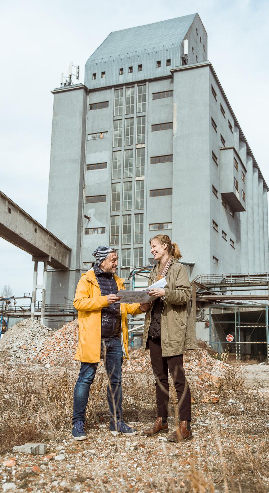 Zachované, citlivo adaptované industriálne budovy, doplnené kvalitnou architektúrou, pekne dotiahnutou v detailoch.