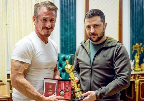 El único que no subió a recibir su premio como Mejor Actor de Reparto fue Sean Penn, quien cambió el oro por el hierro. Eligió viajar a Ucrania y, en lugar de recoger su tercer Oscar, se reencontró con el presidente Volodímir Zelenski, quien le entregó una estatuilla forjada a partir de un tren dañado por Rusia.