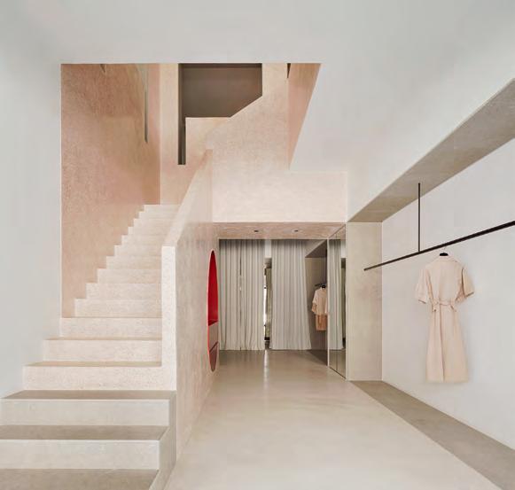 El local destaca por su robusta escalera y los volumétricos expositores.