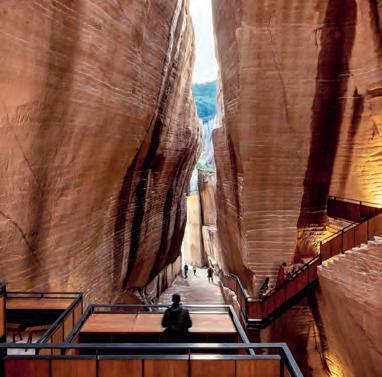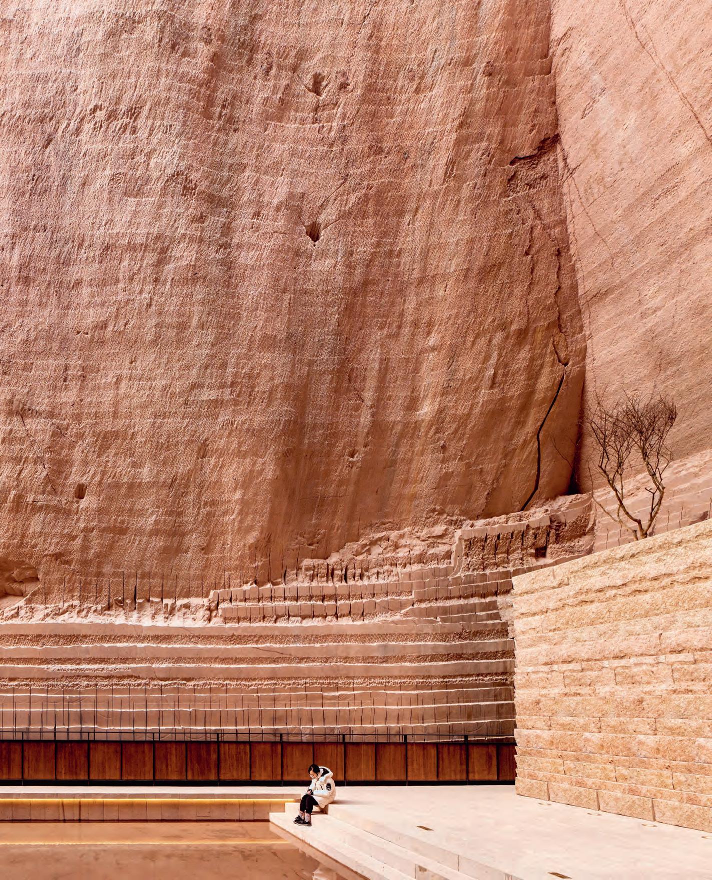 El proyecto del estudio pekinés se desarrolla en canteras próximas, todas situadas en un radio menor de un kilómetro, y conectadas por un sendero. La estrategia de la intervención ha sido realizar operacio nes sencillas —como pequeñas terrazas, ligeras pasarelas o discretas fuentes de iluminación— que aprovechan la belleza de las superficies rocosas y las buenas condiciones acústicas para introducir un pro grama limitado y atento con el enclave. De este modo, los espacios mejor acondicionados se han destinado a la celebración de actos culturales y los de escala más reducida, o con mejores vistas sobre el paisaje, se convierten en imprevistas casas de té y espectaculares miradores. Estas delicadas piezas funcionan como los hitos de un nuevo y respetuoso itinerario a través de la naturaleza.