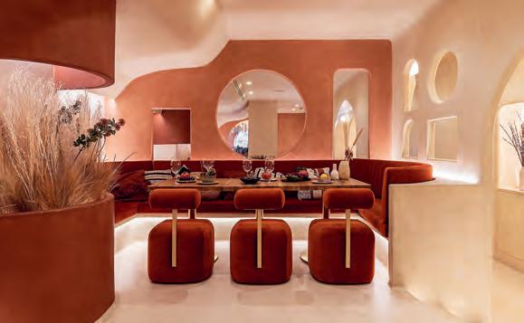 Masquespacio opts for a chromatic palette of earthy tones and curved forms influenced by eastern constructions for Living Bakkali, a place where gastronomy, design, and architecture meet.
