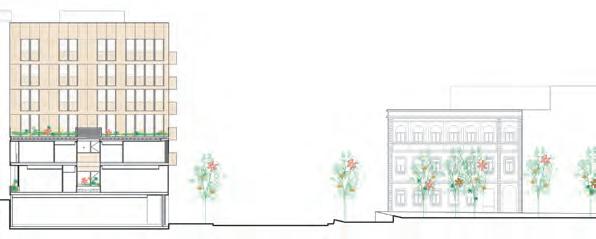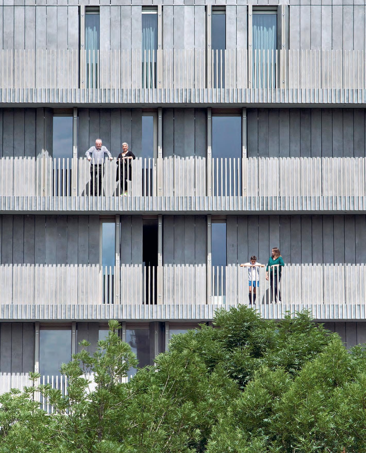 acabado en Dekton Kreta es el protagonista de las fachadas de este edificio de usos mixtos. Dekton Kreta clads the facades of this mixed-use building in a matt grey tone.