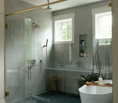According to industry professionals, wet rooms have grown in popularity in recent years. These glass-enclosed, walk-in bathroom spaces eliminate the need for shower doors or curtains, allowing for easy access to both a spacious shower and a freestanding tub. The entire floor of the wet room is waterproofed, often with stylish drain systems, removing the worry of water damage. This creates a spacious and minimalist look, while also making the bathroom more accessible for people with disabilities. These glass-enclosed wet rooms offer a luxurious place to unwind after a long day.