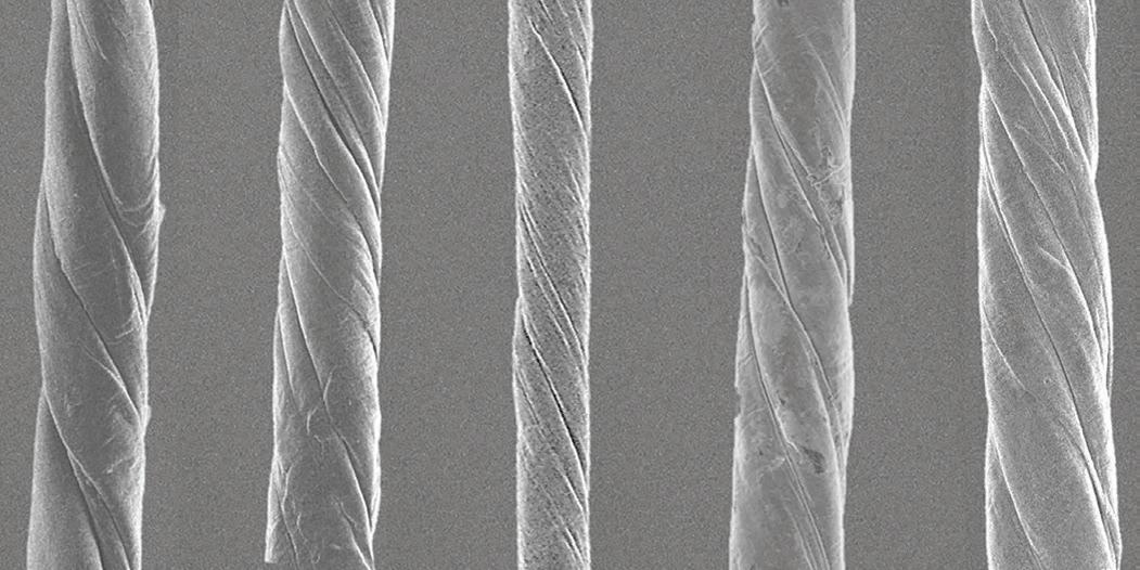 Scanning electron microscope images of carbon nanotube ‘ropes’ subjected to different twist strains.