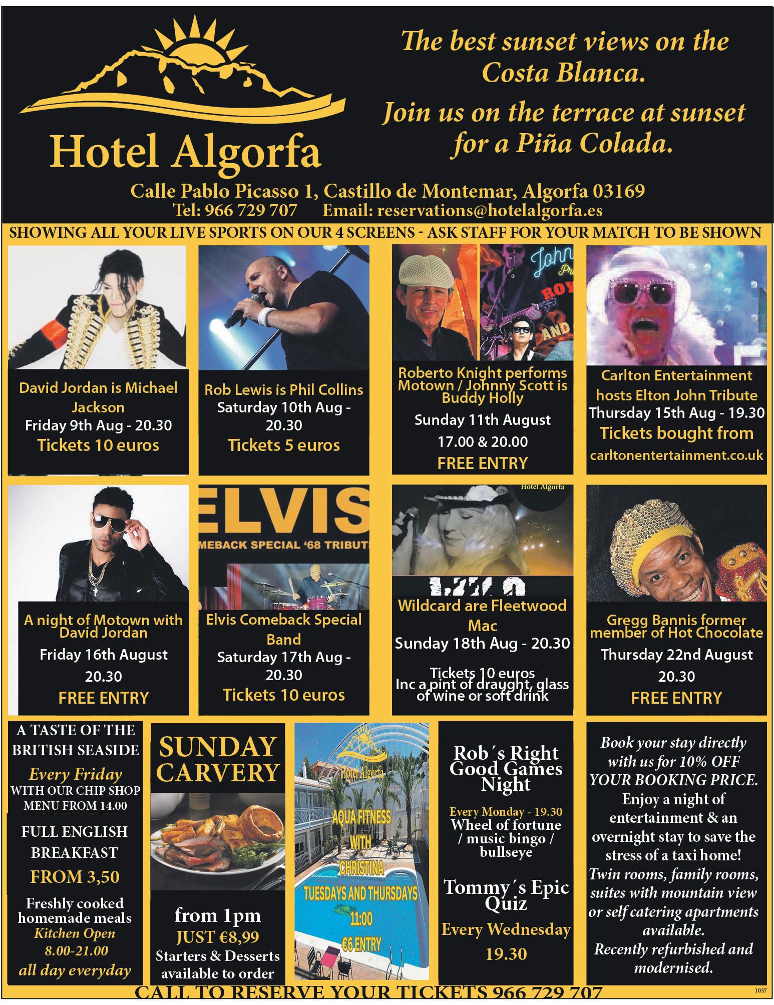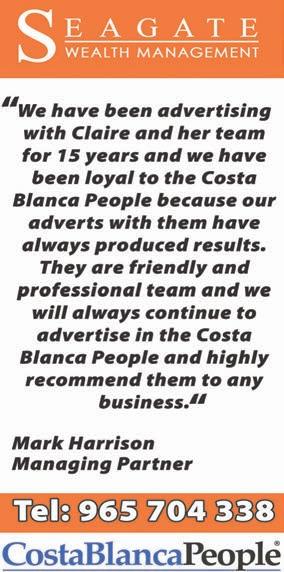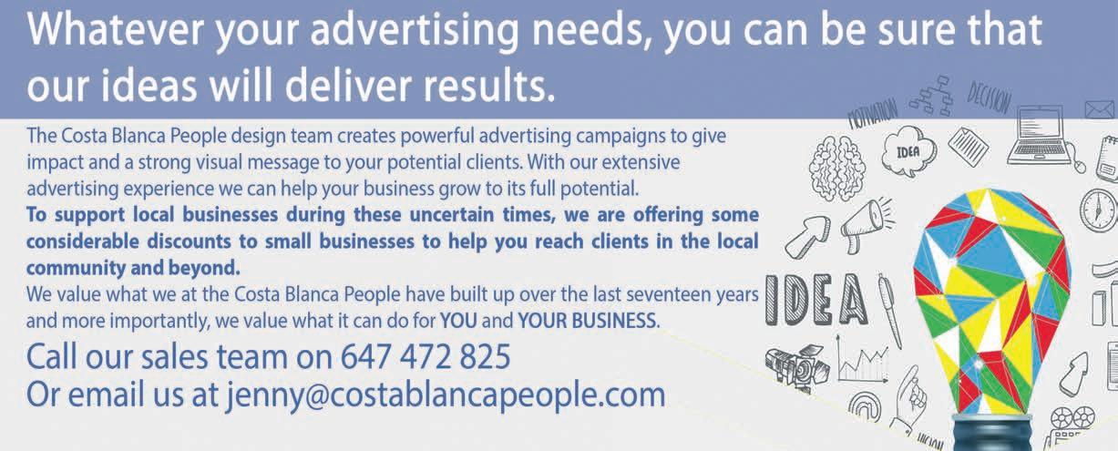 The Alfaz spiritual friends centre who o er a warm welcome at their Thursdays weekly service at the comm (ex the forum/mare nostrum), Camino del Pincho 2, l’Alfaz del Pi, 03580, Alicante, are having their summer break. We will re-open again on Thursday 12th September at 6.30 pm with a new visiting medium. contact dot 634 320 013 email: dorothydorothy608@gmail.com