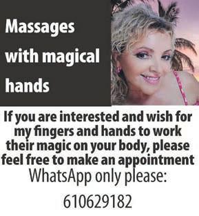 The quali ed male masseuse o ers a massage service, exclusively for women.The best therapeutic, and wonderful relaxing massage.The entire province of Alicante. For detailed information,send a sms vía WhatsApp to phone 627659268.I Will wait for you and thanks for mi con dence. (1053)
