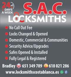 36 www.costablancapeople.com CostaBlancaPeople 7th - 13th February 2023 36 www.costablancapeople.com 7th - 13th February 2023 Classifieds lOCksMitHs Classified ads from as little as €4.20 per week, telephone: 966 725 968 CHurCH and CHarities International Christian Assembly Evangelical Church. We welcome you to Sunday Service at 11am (English) Calle