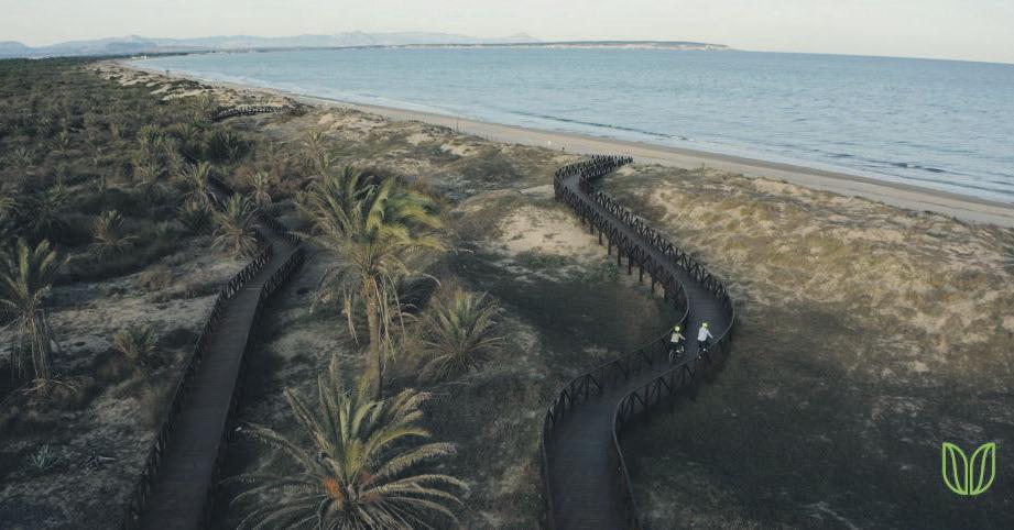 • “Las Veredas”, with a 26-kilometer proposal that passes through the towns of Catral, Dolores, Daya Nueva, Daya Vieja, San Fulgencio and Guardamar del Segura. This environment becomes a privileged setting for bird watching at any time of the year, and as points of interest we will nd the Hermitage of Santa Águeda, the Huerta de Dolores Museum, the Hondico de Amorós in San Fulgencio, the Natural Area The Oasis, the Mouth of the Segura River and Els Tossals Beach in Guardamar del Segura. These routes respond to the drive that is being carried out in the region to promote sustainable tourism, with experiences linked to nature, something that the Vega Baja del Segura can boast of, which