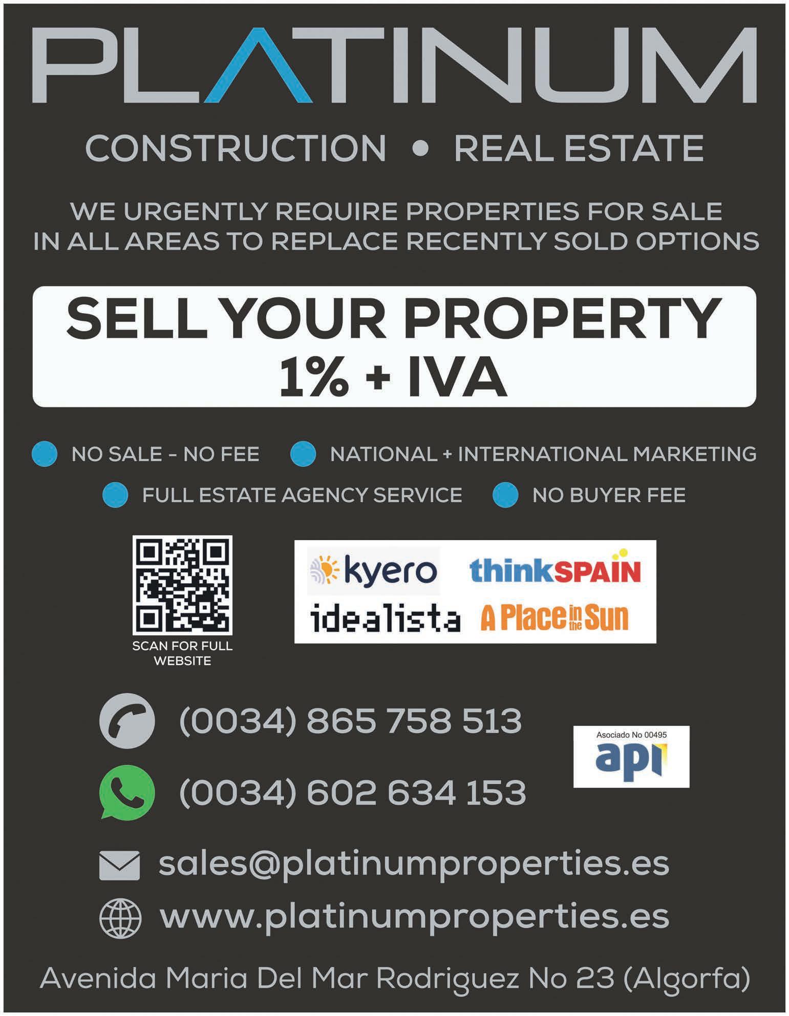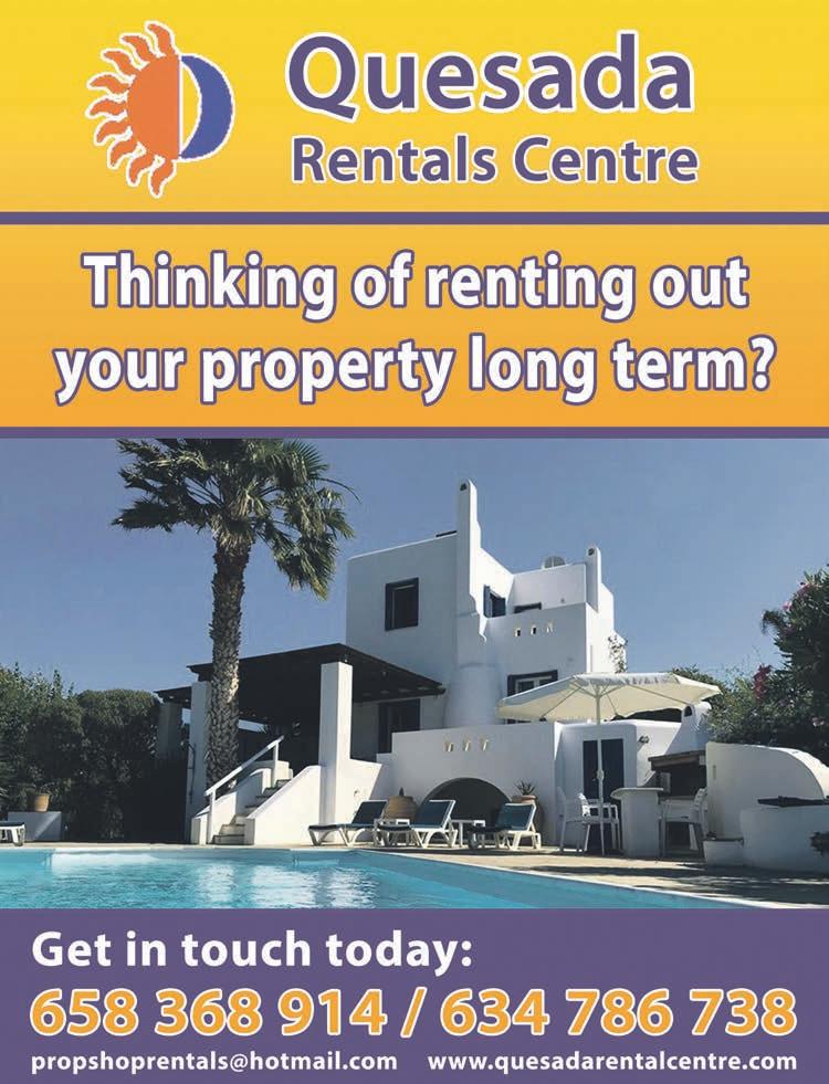 4 www.costablancapeople.com CostaBlancaPeople 26th March - 1st April 2024 News Automóviles Crespo S.A. Avda de Crevillente 71, Elche 03293 96 666 22 60 - 606 994 076 www.automovilescrespo.com FORDSTORE FORD FOCUS TREND+ FORD FOCUS STLINE FORD FOCUS STLINE X FORD GRAND CMAX TREND+ FORD KUGA TITANIUM FORD KUGA TREND+ FORD ECOSPORT STLINE FORD KUGA STLINE X FORD KUGA STLINE X FORD RANGER RAPTOR FORD EDGE STLINE 4WD 2017 AUDI Q3 1.5TFSI STRONIC 977 LIMITED STOCK ON REDUCED PRICED DEMO CARS EXIT AT JUNCTION 523 AND TAKE THE SLIP ROAD AFTER THE SECOND ROUNDABOUT Automóviles Crespo S.A. Avda Crevillente 71, Elche 96 666 22 60 - 606 994 076 www.automovilescrespo.com FORD FIESTA LIMITED EDITION PETROL 2021 14.900€ FORD FOCUS TREND+ PETROL AUTO 2020 21.900€ FORD FOCUS TITANIUM HYBRID 2021 21.500€ FORD FOCUS STLINE HYBRID 2022 22.900€ FORD PUMA TITANIUM HYBRID 2020 20.500€ FORD PUMA STLINE X HYBRID 2021 22.500€ FORD KUGA TITANIUM PETROL 2020 25.500€ FORD KUGA STLINE PETROL 2019 22.900€ FORD MUSTANG FASTBACK 5.0 GT 2017 43.900€ FORD ECOSPORT ACTIVE PETROL 2022 23.900€ KIA SPORTAGE XTECH PETROL 2018 19.900€ SKODA FABIA AMBITION PETROL 2017 9.900€ AUTOMÓVILES CRESPO THE BIGGEST AND BEST FOR PRICE CHOICE AND QUALITY 1033 LIMITED STOCK ON REDUCED DEMO CARS Repairs for Civic Centre Preparations are underway for the long-awaited repair of the Ramón de Campoamor civic centre in Orihuela Costa, as the drafting of the project commences. Anabel García Mateo, the Councillor for Citizen Participation, recently paid a visit to the Ramón de Campoamor civic centre, accompanied by the architect tasked with drafting the project aimed at addressing the structural damage that led to its closure four years ago. This initial inspection signals the start of the comprehensive repair of the facility. The appointed company will conduct a thorough evaluation of the premises to compile a technical report outlining the necessary corrections for various structural issues. These include the collapse of the perimeter pavements, water in ltration through holes in the retaining wall of the basement oor, inclined cracks in interior partitions, bulging tiled walls, damaged passage