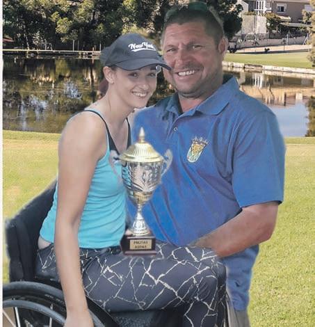 Picture shows Frutas ASPAS Director Jody Lee Baxter presenting the cup to winner Steve Gain. www.imanyogolfsociety.com imanyogolfsociety@gmail. com