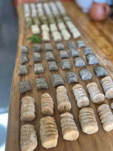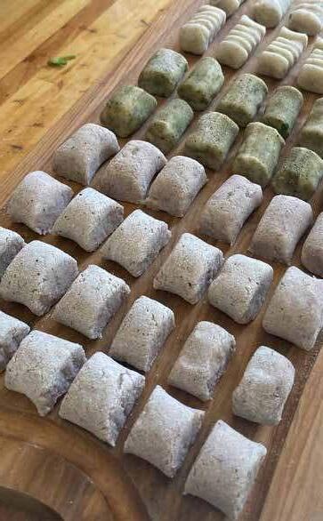 Una vez listo amasas con ambas manos en un lugar limpio y seco (agrega harina para que no se pegue), hacer una especie de cilindro delgado y luego cortar en piezas iguales. Puedes hacerlas rodar con un tenedor para darle las curvas o simplemente hacerlas como te gusten.