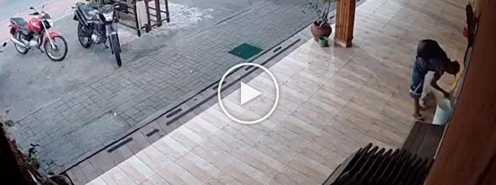 De acordo com as imagens gravadas por uma câmera de segurança do local, um homem passou pela avenida Princesa Isabel, no bairro Barra Velha, recolhendo latinhas recicláveis, porém, como a lixeira