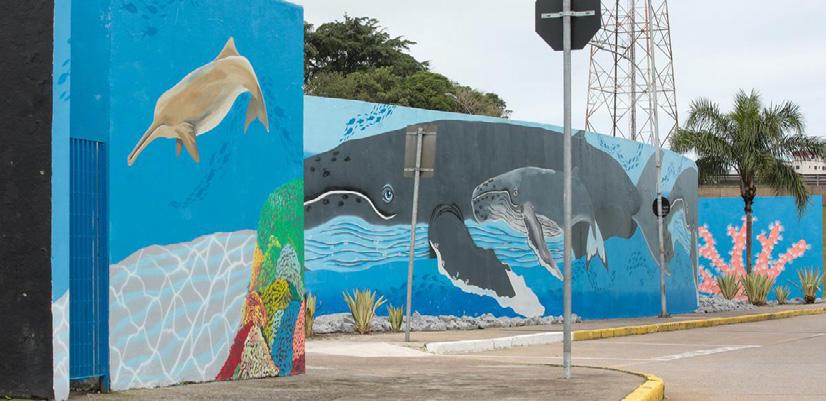 V ocê sabia que o maior mural sobre a vida marinha do Brasil fica em Praia Grande? O painel temático possui 490 metros quadrados e está localizado ao lado do Terminal Tude Bastos, no bairro Sítio do Campo. E, para deixar o ambiente ainda mais especial e atrativo, foi instalada uma placa interativa com QR Codes que levam para as informações sobre as espécies encontradas no município e ilustradas na obra.