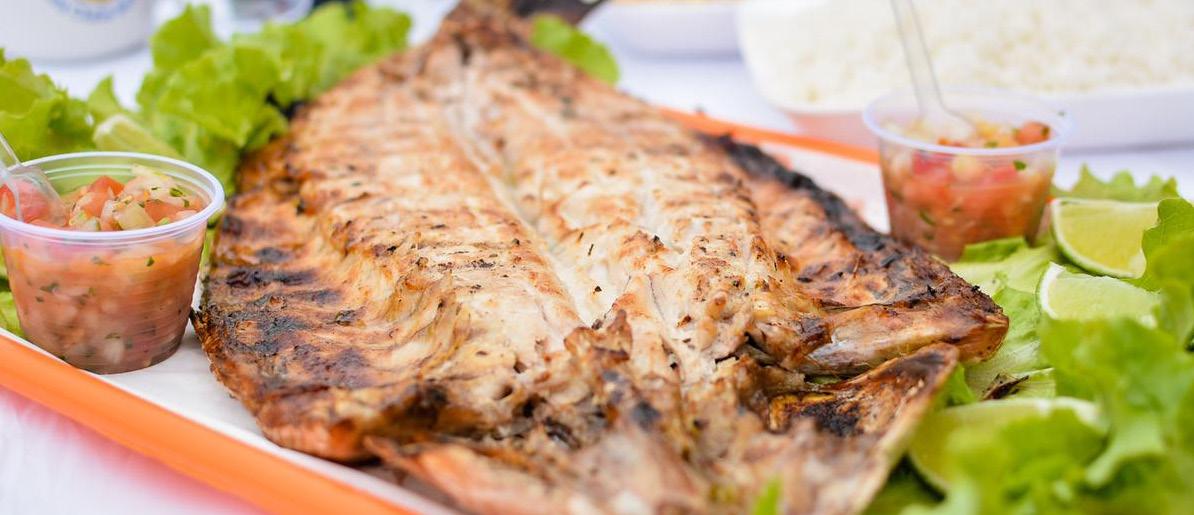 a domingo e tem como grande estrela a tainha, acompanhada de duas porções de vinagrete, arroz, farofa e pão, disponíveis no réchaud para self-service. O prato serve até três pessoas e tem o valor de R$ 135,00. O diferencial está na preparação, feita na hora, com ingredientes sempre frescos.