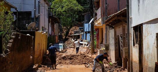 Rua e casas tomadas por lama na Vila Sahy como resultado das chuvas que atingiram o município em fevereiro