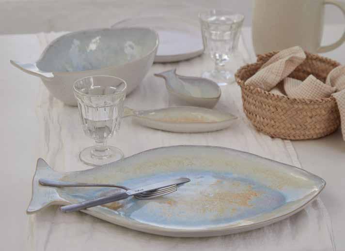 A reactive white glaze embellishes and brings a contemporary touch to Cristal. PAGE 54