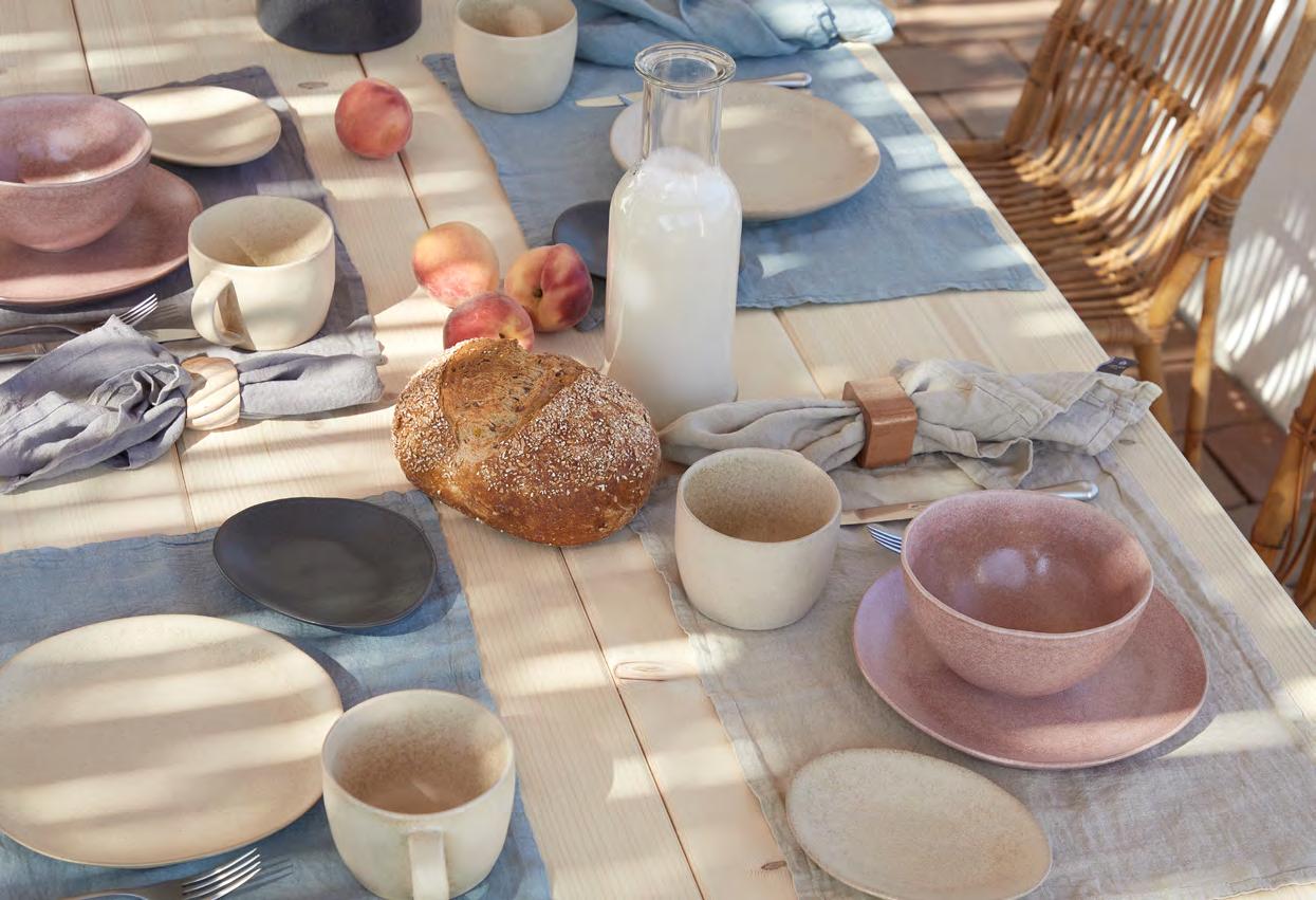 The Alentejo collection celebrates the peaceful feeling of the southern Portuguese landscape, filled with vast plains and olive trees. With gently flowing edges and soft glazes seamlessly mix and match both dinnerware and oven to table complements, adding warmth to any table, whether indoors or out.