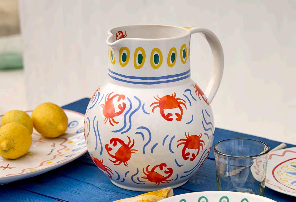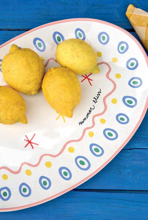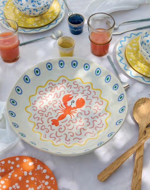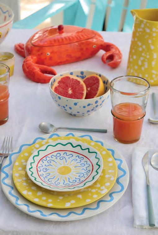 A French designer raised in a family of porcelain makers, now based near Lisbon. After studying at Central Saint Martins, she ventured into ceramics, textiles, and painting. Her playful and colorful creations blend French charm, London’s quirky edge, and Portuguese warmth, infusing joy and humor into everyday life. Her inspiration led to the creation of the Summer Bliss collection.