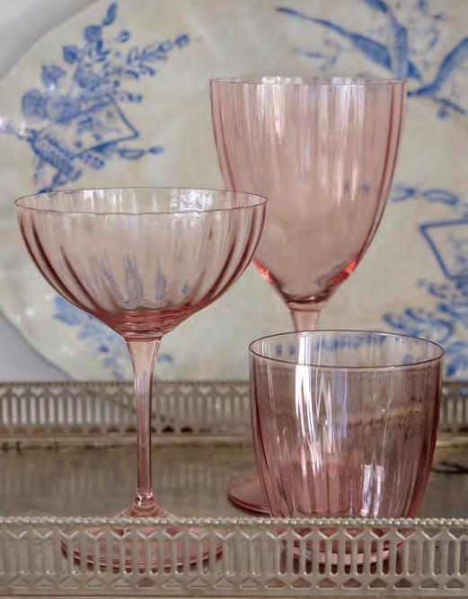 Glassware accents that capture light and transparency, with embossed patterns that bring a subtle element of surprise and vintage elegance to the table.