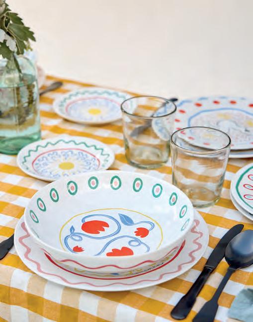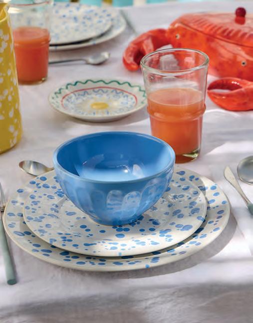 The perfect collection to bring color and joy to your table. Each piece is hand-decorated with vibrant splashes of color, creating a unique and lively pattern.