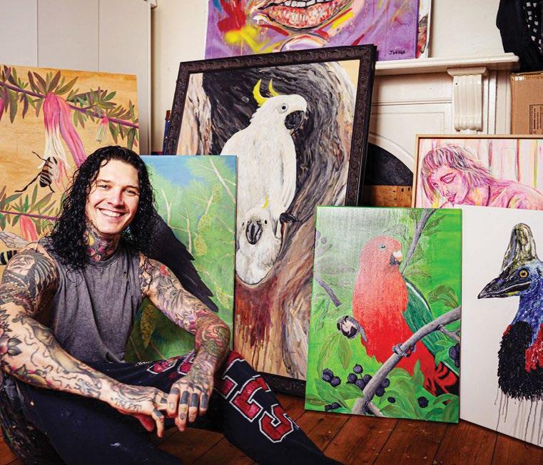 Josh, a Palawa man, was awarded a Council activation grant for Wings of Wonder, a work celebrating native birds displayed on pop-up cubes in Prahran Square and Rockley Gardens.