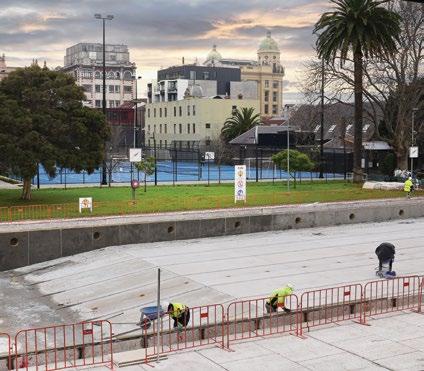 Works kicked off recently with the decommissioning of the outdoor 50-metre pool, which included draining the pool and removing the old tiles. And now many hands are making light work of replastering and retiling the pool shell.