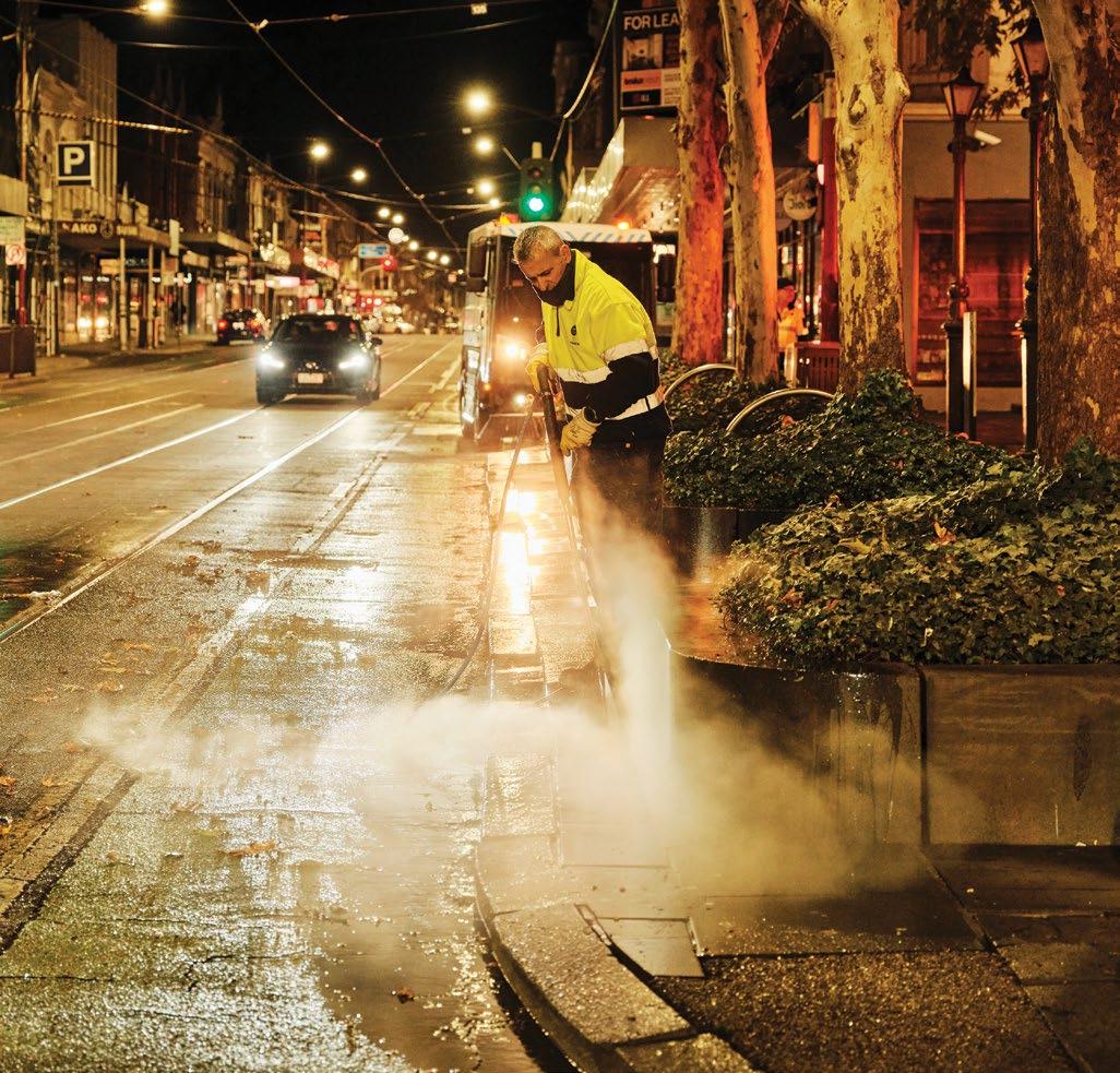 ↖ Our Clean Team out on the job in the early hours of the morning.