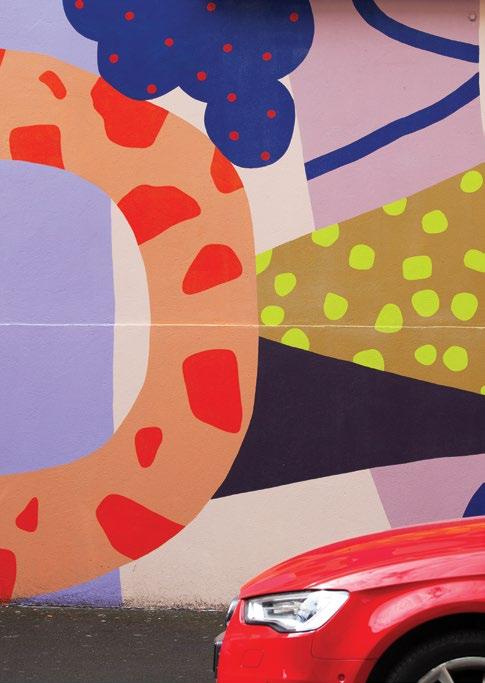 Through Council’s Frameworks Public Street Art Program, which commissions site-specific works to inspire and connect, Greville Street has welcomed a new mural by Hoffy – a Melbournebased artist known for bold, abstract forms inspired by nature and everyday life. The previous artwork by Esther Olsson was a much-loved local feature for more than seven years, making way in September for this striking new piece.