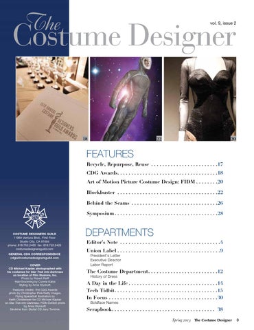 FEATURES Recycle, Repurpose, Reuse . . . . . . . . . . . . . . . . . . . . . . . . 17 CDG Awards. . . . . . . . . . . . . . . . . . . . . . . . . . . . . . . . . . . . 18 Art of Motion Picture Costume Design: FIDM. . . . . . . . 20 Blockbuster . . . . . . . . . . . . . . . . . . . . . . . . . . . . . . . . . . . . 22 Behind the Seams . . . . . . . . . . . . . . . . . . . . . . . . . . . . . . . 26 Symposium. . . . . . . . . . . . . . . . . . . . . . . . . . . . . . . . . . . . . 28