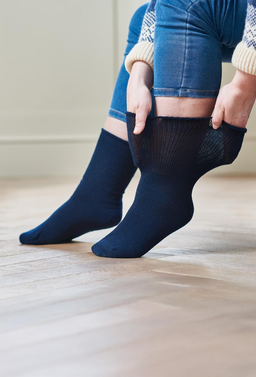 Ideal if you have diabetes, sensitive feet or just want to feel really comfy. Designed to stay up without cutting in or restricting circulation, these socks have a smooth join at the toe that won’t rub or irritate.