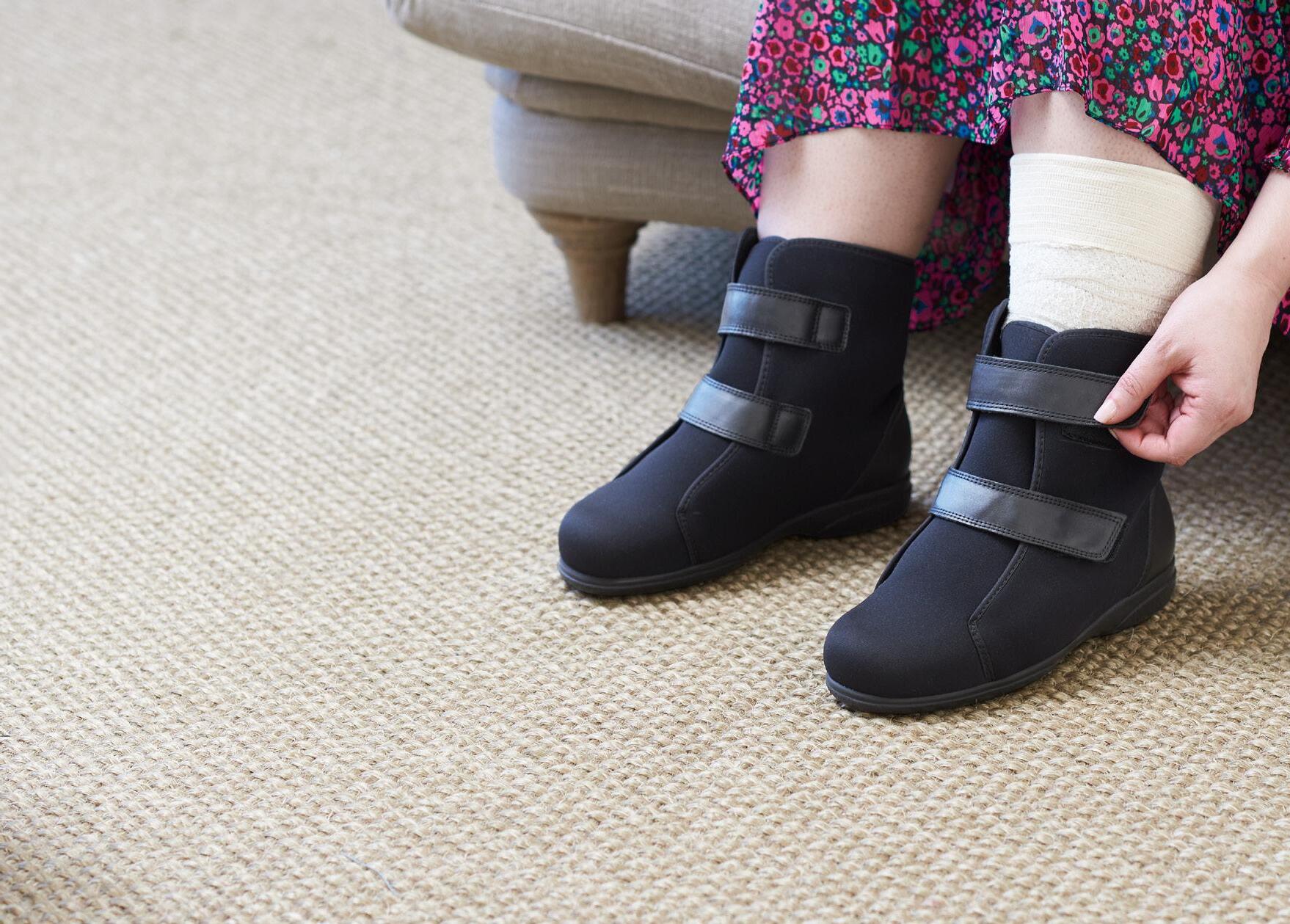 This stylish boot is designed with more room around the ankle and toe areas to accommodate swelling