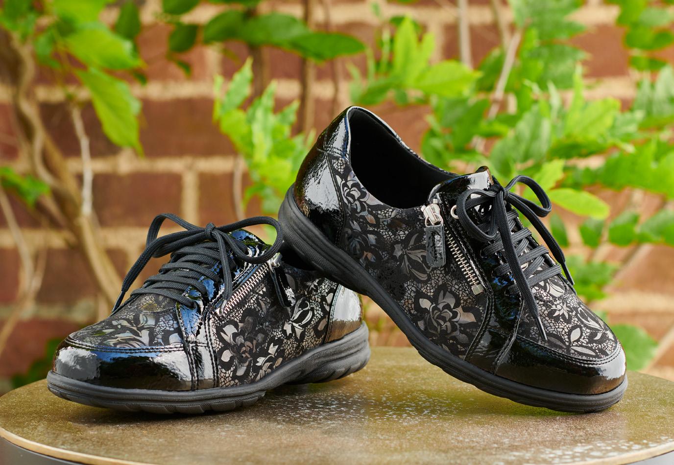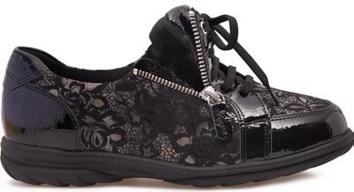 Traditional lace can be adjusted for a flexible fit, with an additional zip fastening to ensure easy access