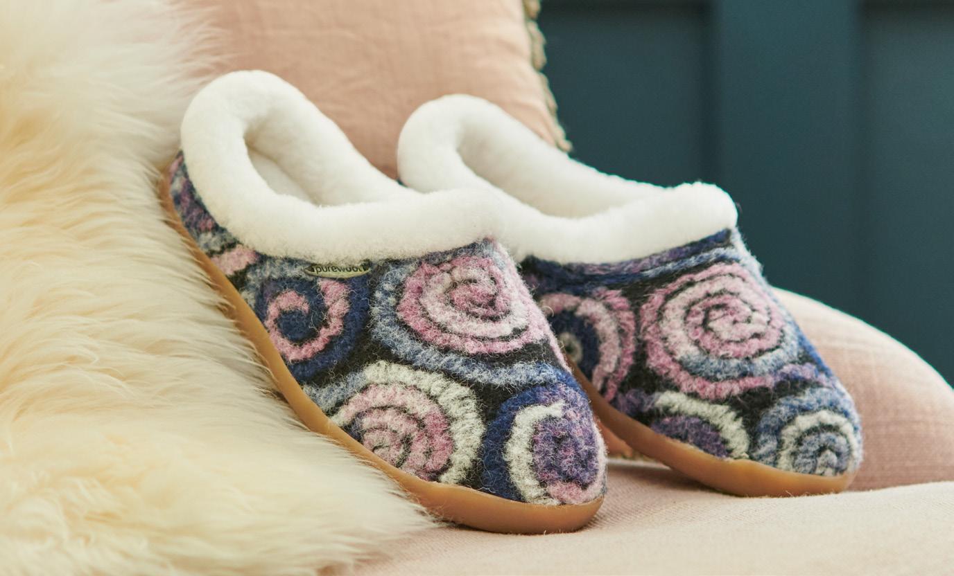 Our range of CosyTex™ footwear is windproof, breathable and 100% waterproof. Embrace the current trend for wool, along with the natural benefits it brings, with our Purewool™ slippers and shoes.