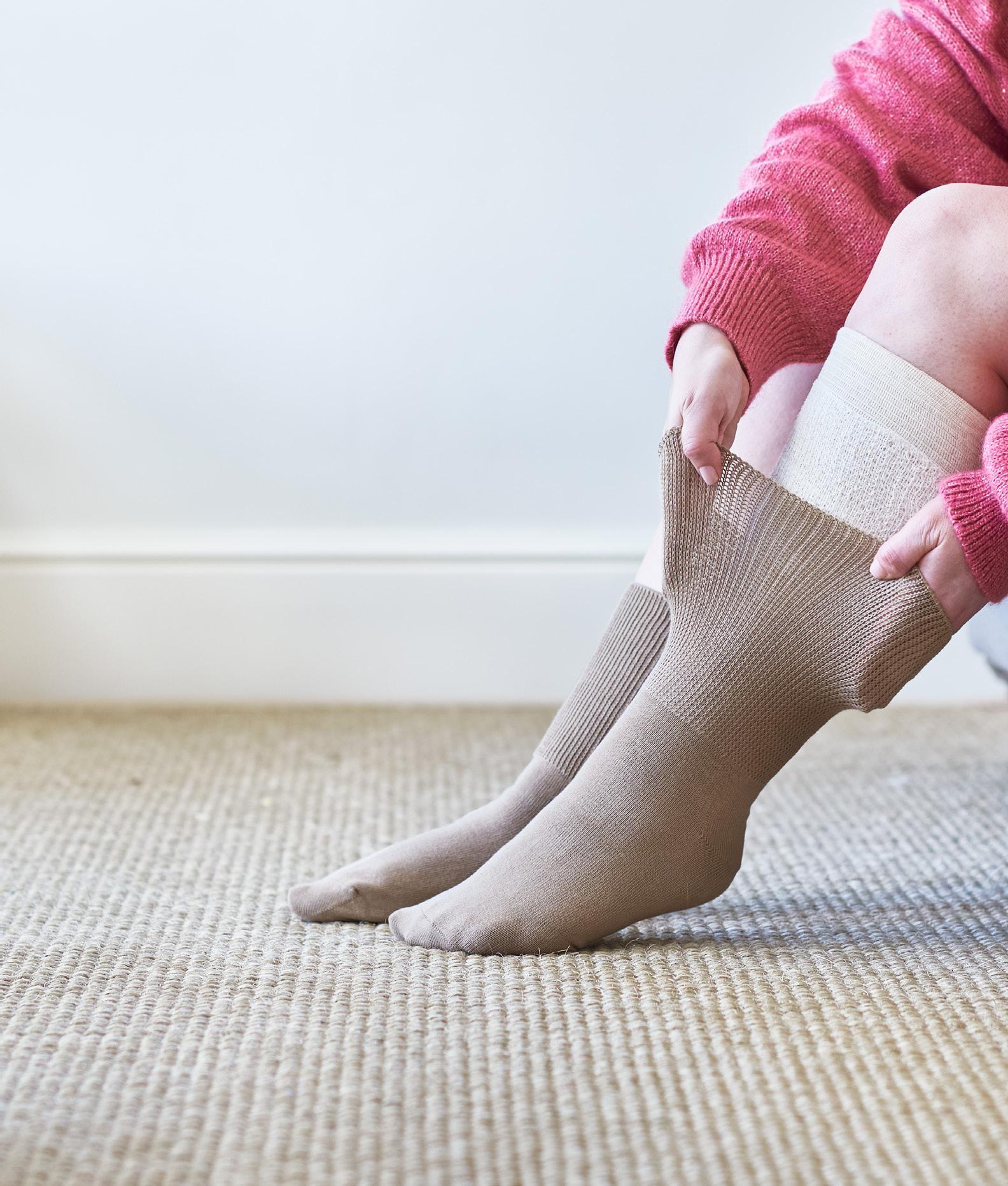 Made with more material throughout, our socks and hosiery fit swollen feet and legs in comfort and are easy to get on and off a swollen foot.