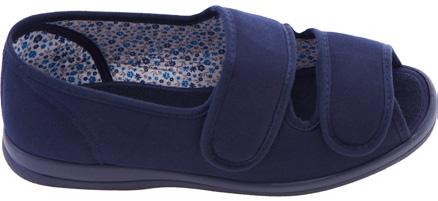 Adjustable touch-fastening strap opens down to the toe, making it easy to get on and off a swollen foot